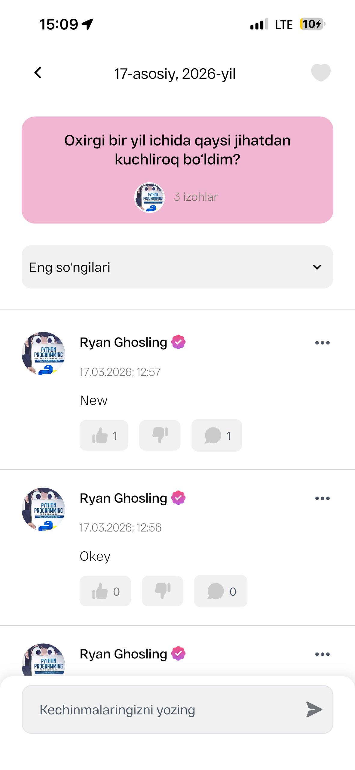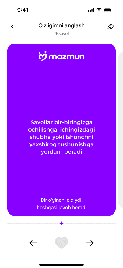 Mazmunda har kuni sizga yo‘nalish beruvchi reflektiv savollar mavjud ular kuningizga ma’no va kayfiyat beradi